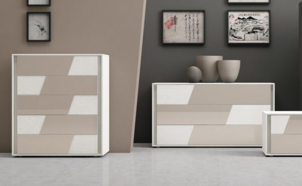 La nuova serie di mobili contenitori per la camera da letto, si sviluppa sugli accostamenti lucidi, opachi, materici della ampia gamma colori disponibile.