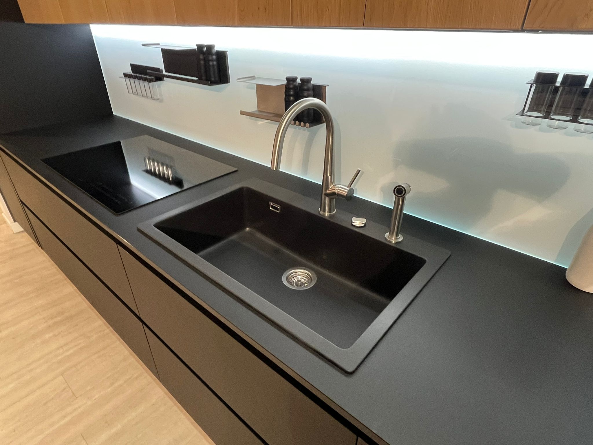 Il top è già forato per un piano induzione da 80cm e un lavello incasso standard da 70 cm (acquistabili a parte)