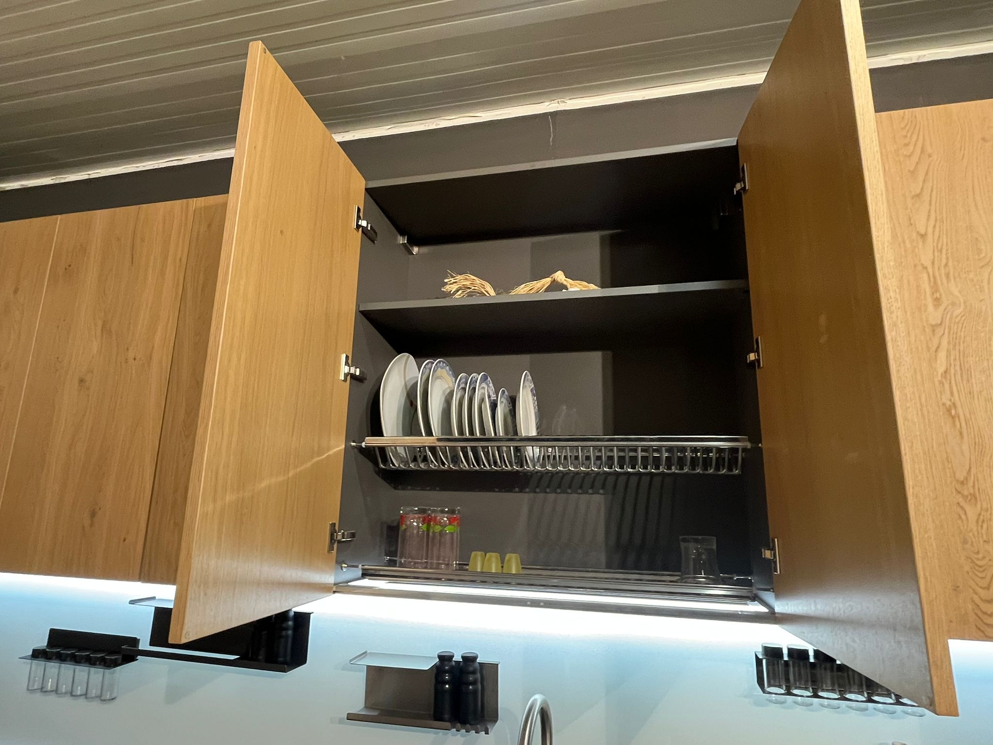 Non è inclusa nella soluzione proposta un vano per la lavastoviglie, ma può essere inserita andando a sostituire uno dei moduli 2 cestoni laterali.